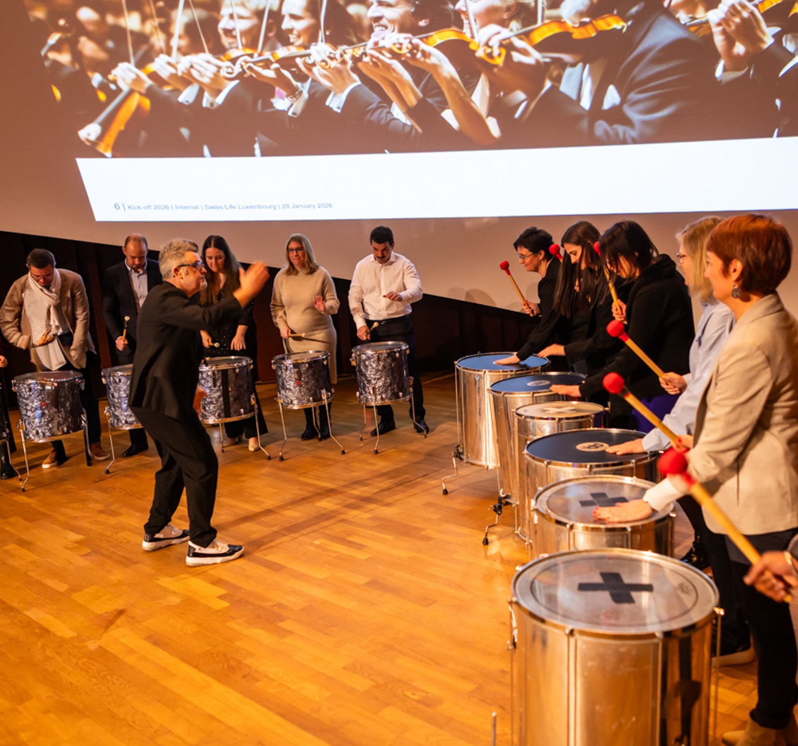 Le TEAM BUILDING PERCUSSIONS BRÉSILIENNES est un véritable outil pédagogique, ludique et énergique. Il génère l’esprit d’équipe au son de la samba-reggae typique du Brésil.